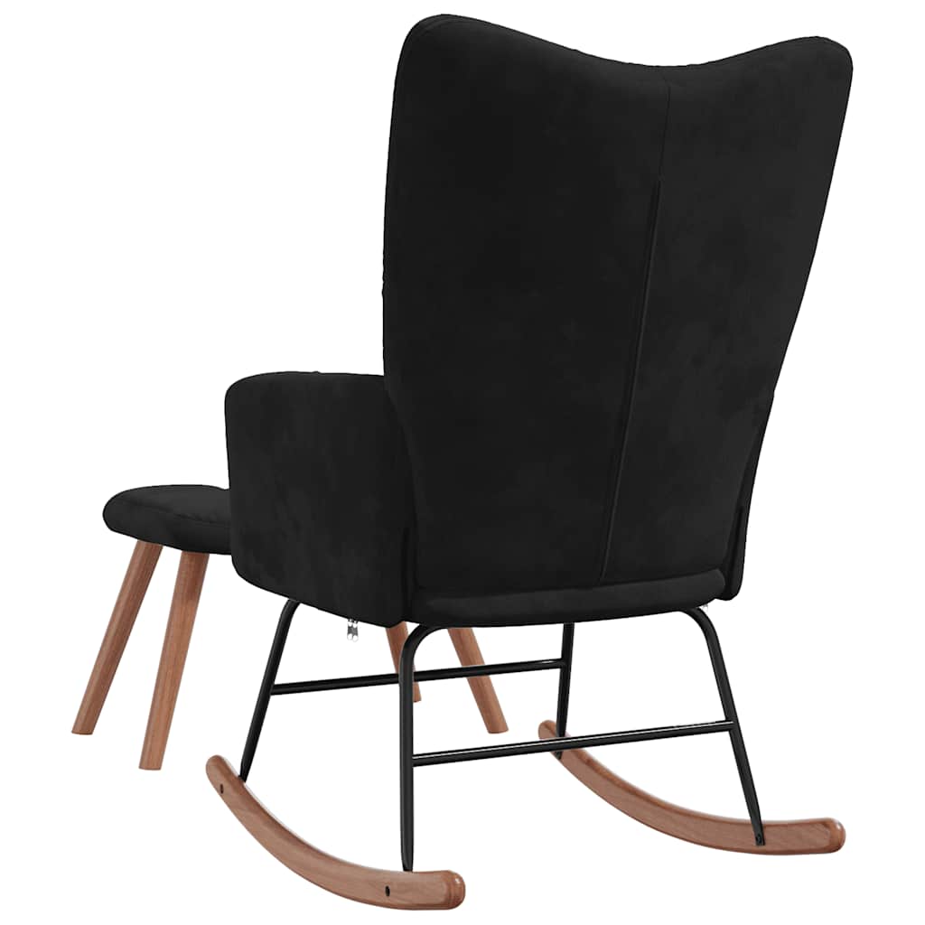 Poltrona a Dondolo con Poggiapiedi Nera in Velluto 328156