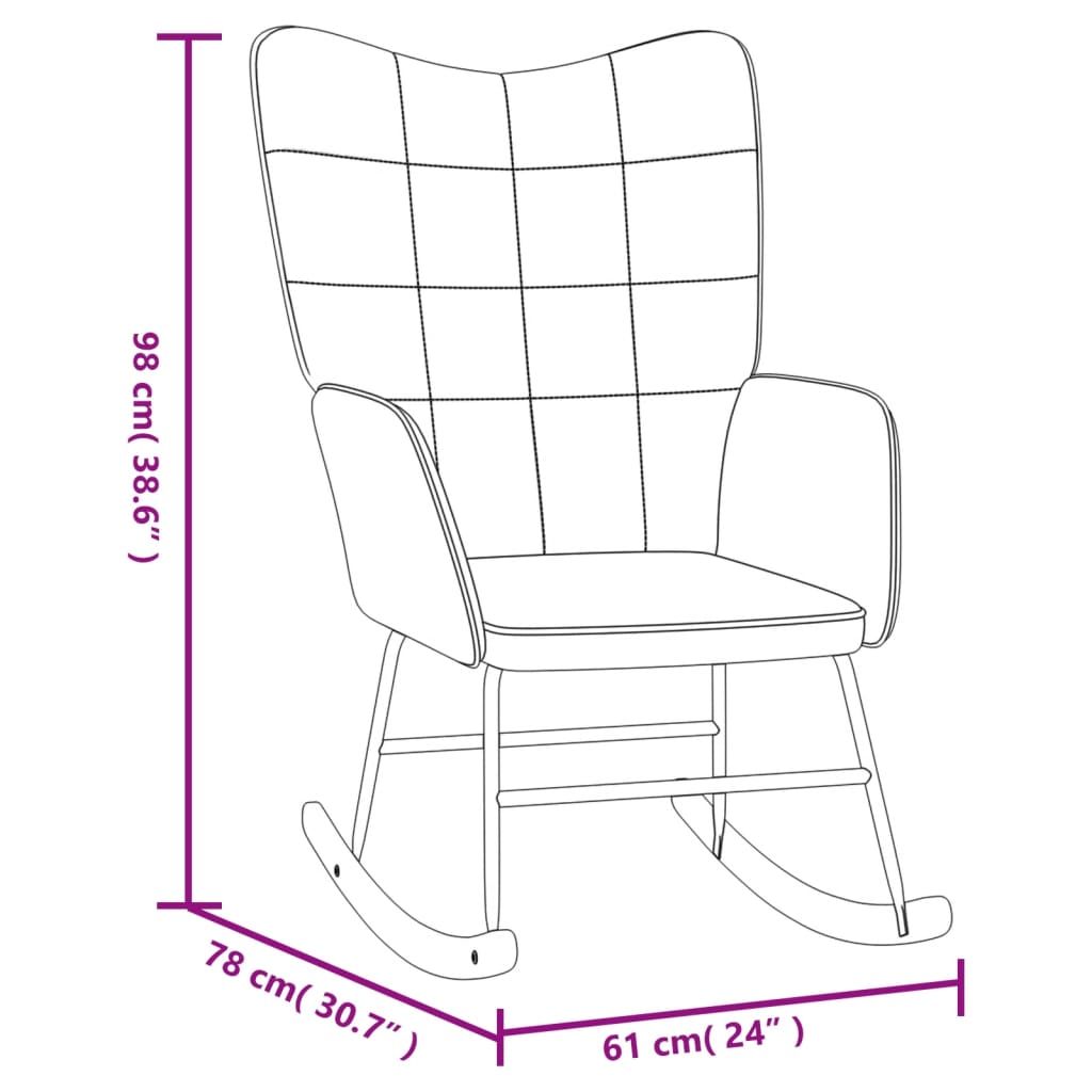 Questa sedia con braccioli è caratterizzata da un pattern regolare che la rende esteticamente piacevole. Grazie all'imbottita in gommapiuma, rivestita in velluto morbido al tatto, potrete godervi il tempo libero nel massimo comfort. Poiché lo schienale è in PVC, questa poltrona relax è resistente. Con il design lungo dei binari a dondolo, la poltrona relax non si ribalta facilmente. Supportata da struttura e gambe in acciaio, insieme a binari a dondolo in legno, la sedia da soggiorno con poggiapiedi è stabile e durevole.