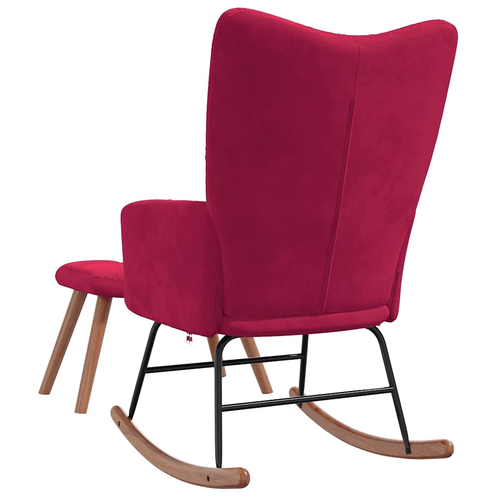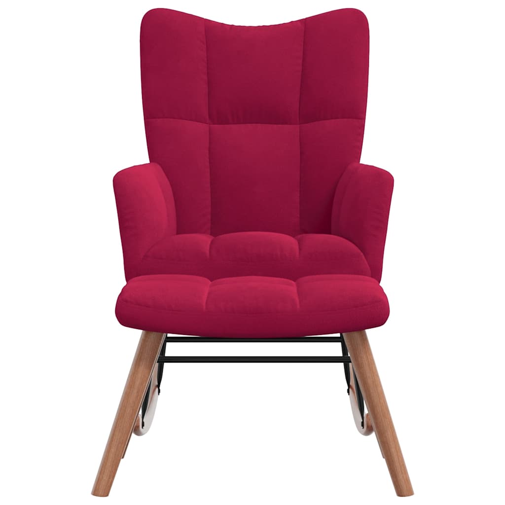 Poltrona a Dondolo con Poggiapiedi Rosso Vino in Velluto 328155