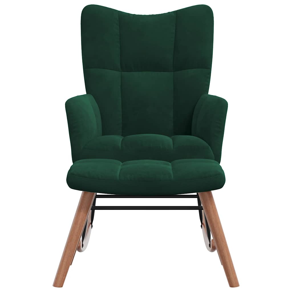 Poltrona a Dondolo con Poggiapiedi Verde Scuro in Velluto 328152