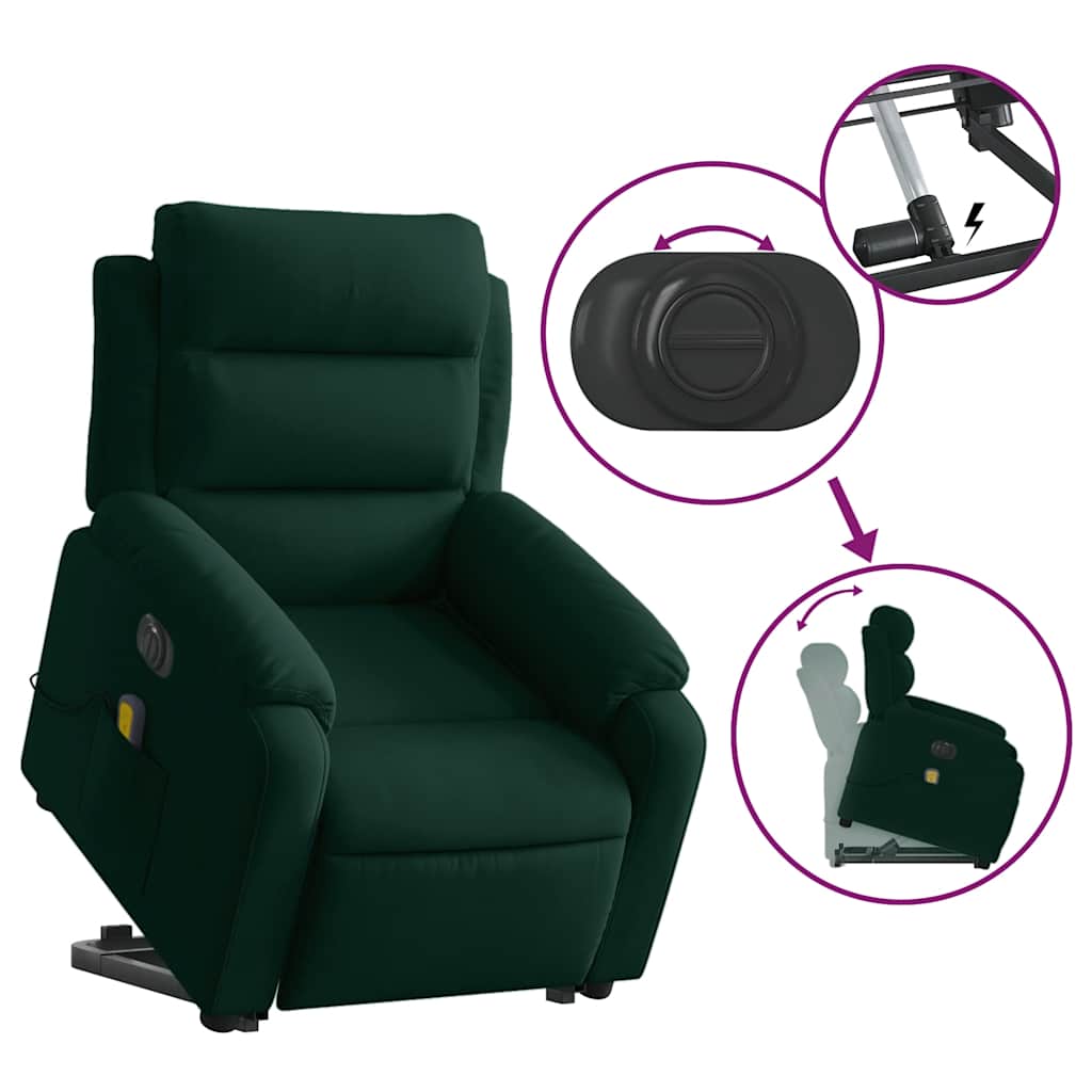 Poltrona Alzapersona Massaggiante Elettrica Verde Scuro Velluto 3205127