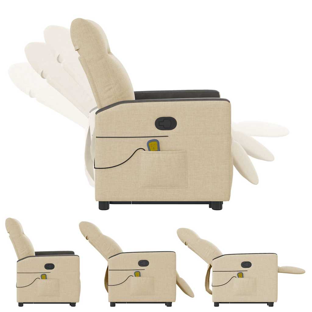 Poltrona Alzapersona Massaggiante Reclinabile Crema in Tessuto 3324063