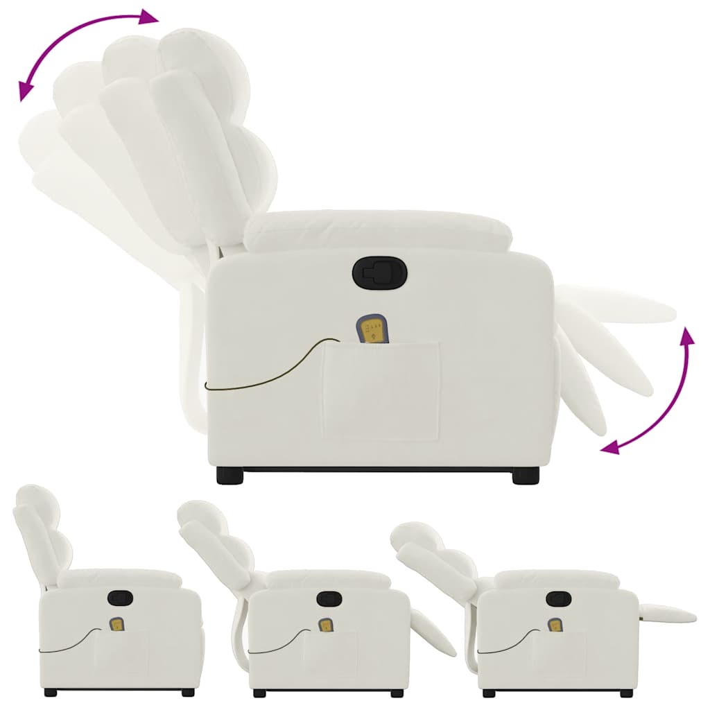 Poltrona Alzapersona Massaggiante Reclinabile Crema in Velluto 3205112