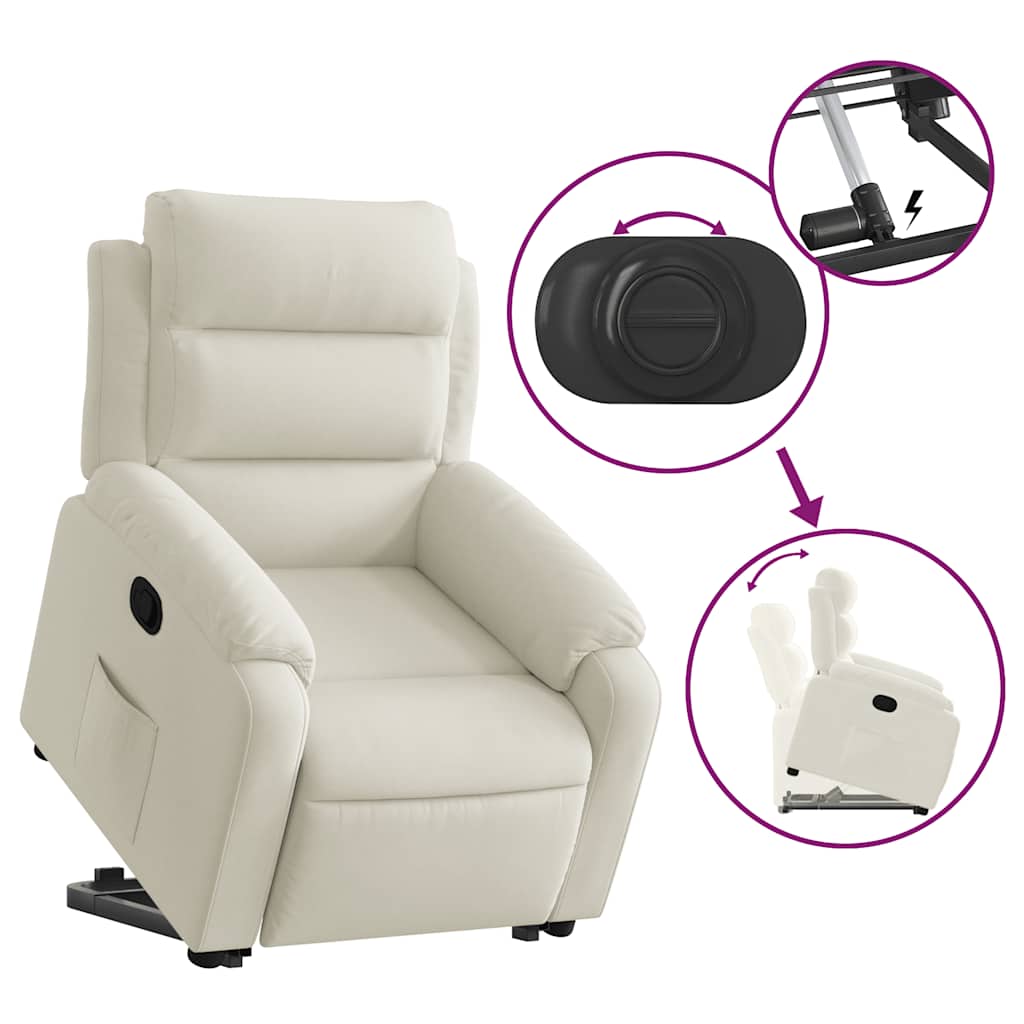 Poltrona Alzapersona Reclinabile Crema in Velluto 3205101