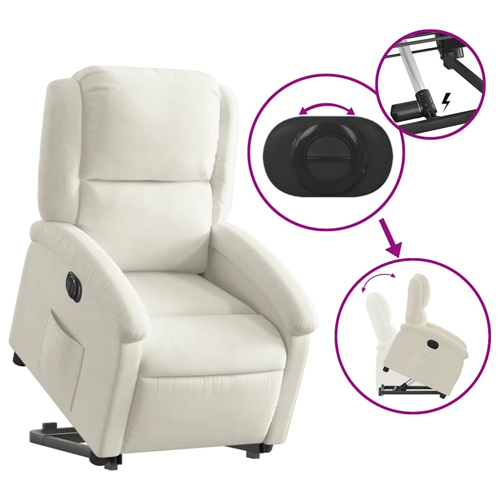 Poltrona Alzapersona Reclinabile Elettrica Crema in Velluto 3204331