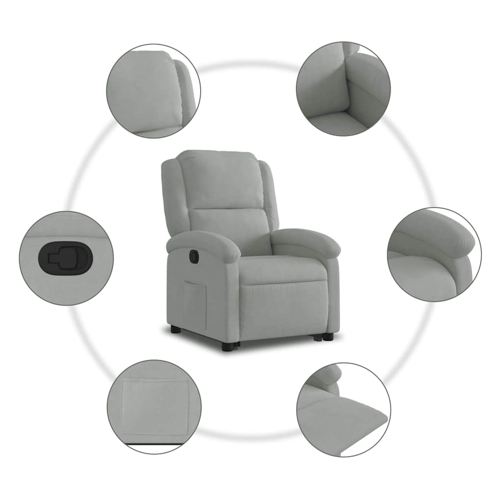 Poltrona Alzapersona Reclinabile Grigio Chiaro in Velluto 3204300