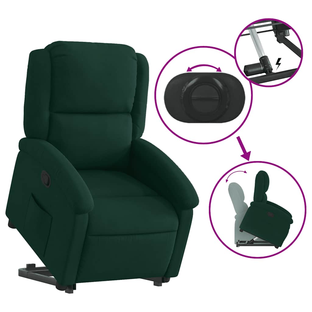 Poltrona Alzapersona Reclinabile Verde Scuro in Velluto 3204302
