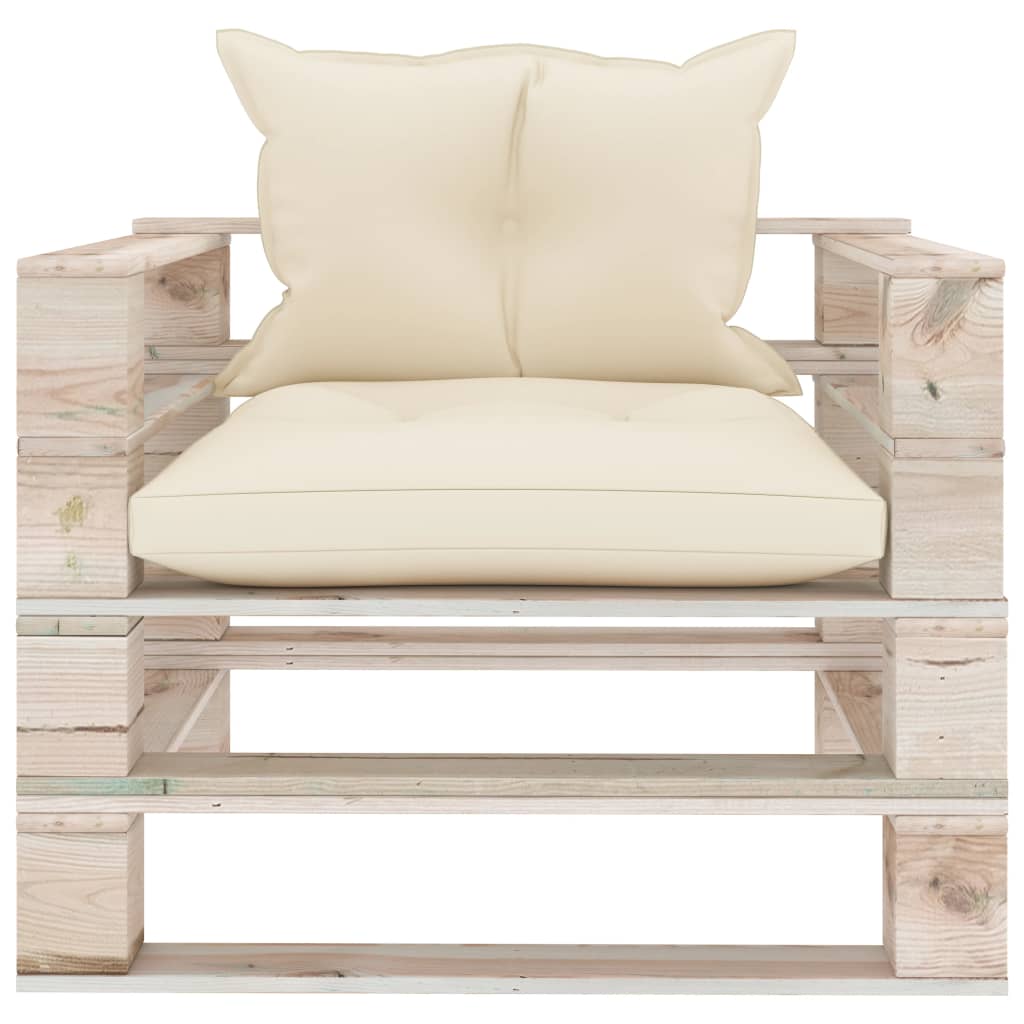 Poltrona da Giardino Pallet con Cuscini Crema in Legno di Pino 3066043