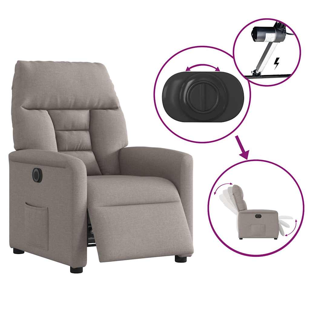 Poltrona Elettrica Reclinabile Tortora in Tessuto 3303019