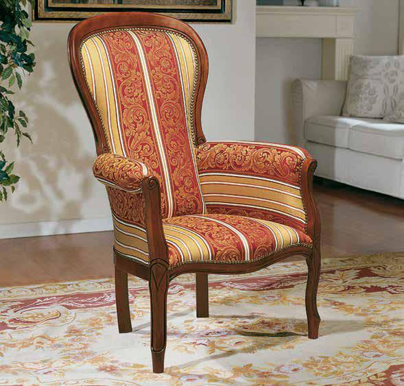 MOBILI 2G - POLTRONA IMBOTTITA IN LEGNO MASSELLO INTAGLIATA CON FREGI