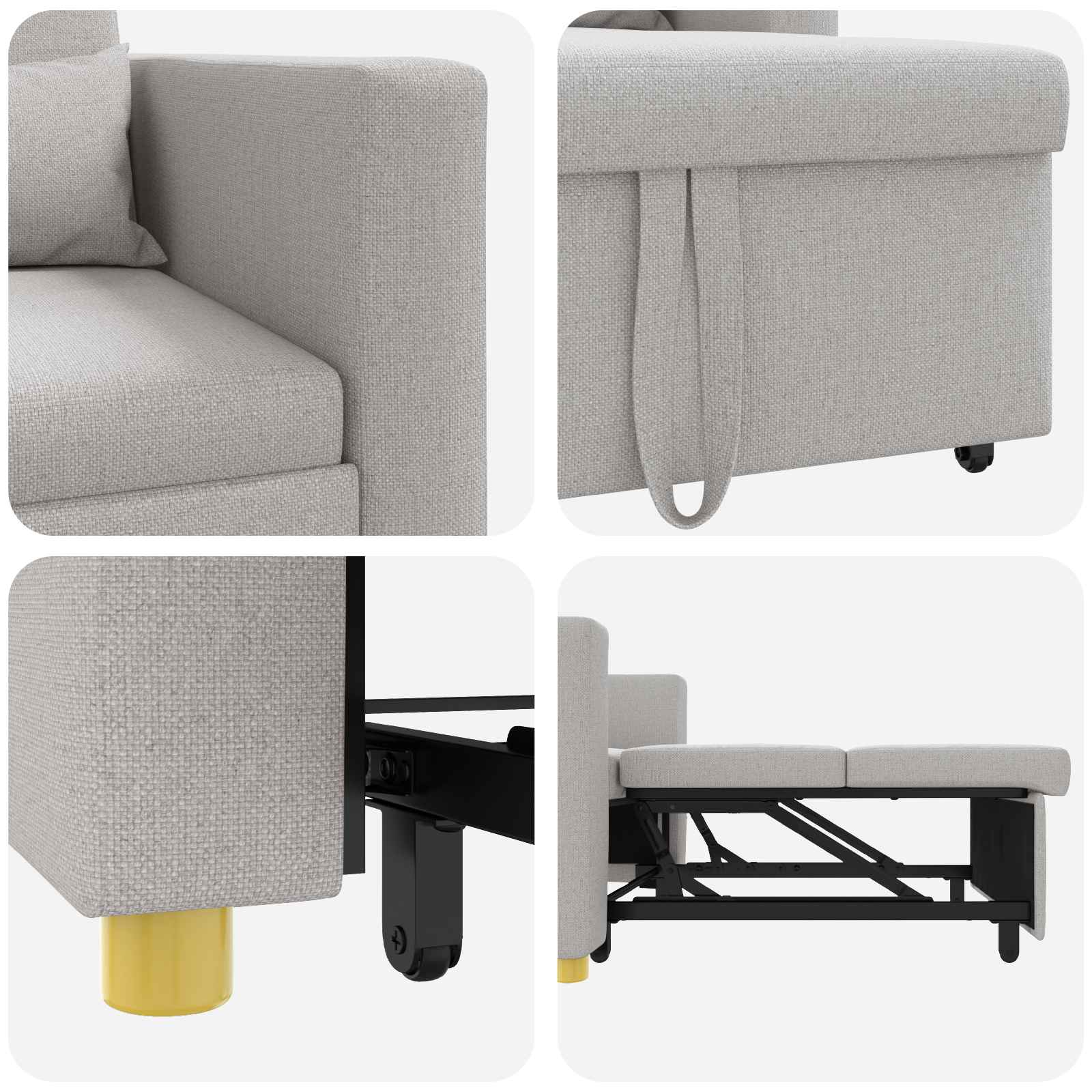 - Caratteristiche/Funzione/Design: Grazie al meccanismo convertibile 3-in-1, questo divano letto permette una trasformazione semplice tra poltrona, reclinabile e letto. Questa flessibilità lo rende ideale per spazi ridotti, garantendo indispensabile funzionalità senza occupare spazio supplementare. Le linee pulite e il design minimalista mantengono uno stile moderno.