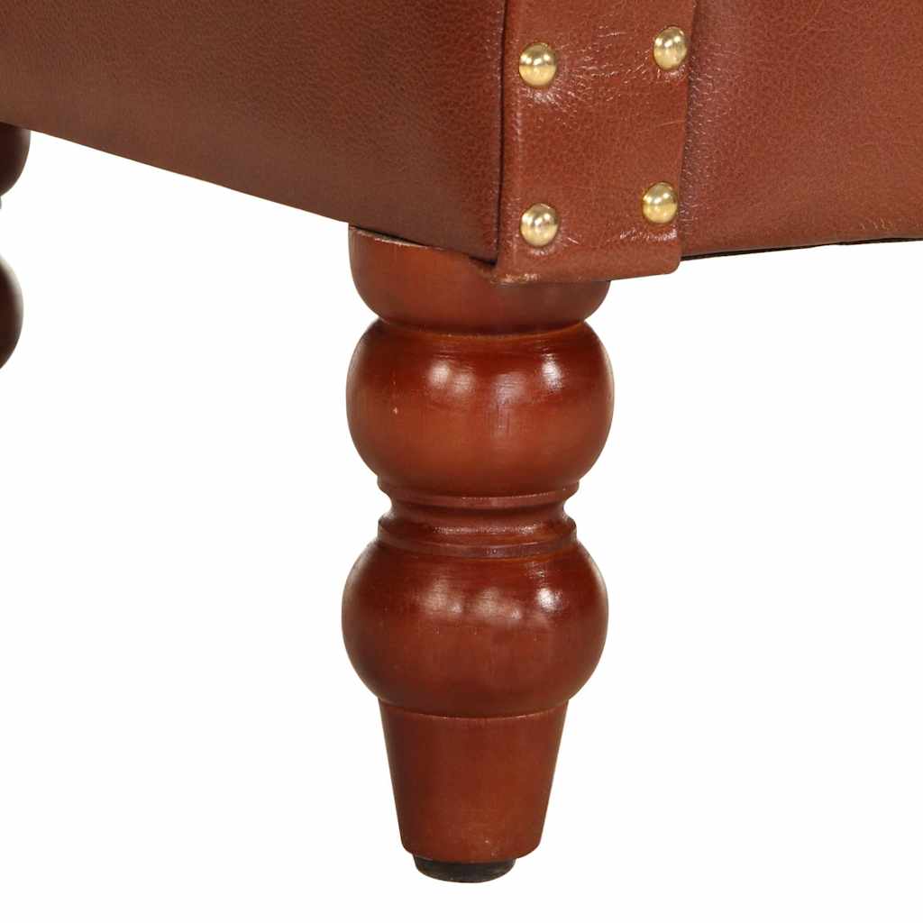 Questa sedia è rivestita in resistente vera pelle di capra, offrendo un'eccellente esperienza di seduta. Il divanetto è sostenuto da gambe in legno massello di mango, che lo rendono stabile e robusto.