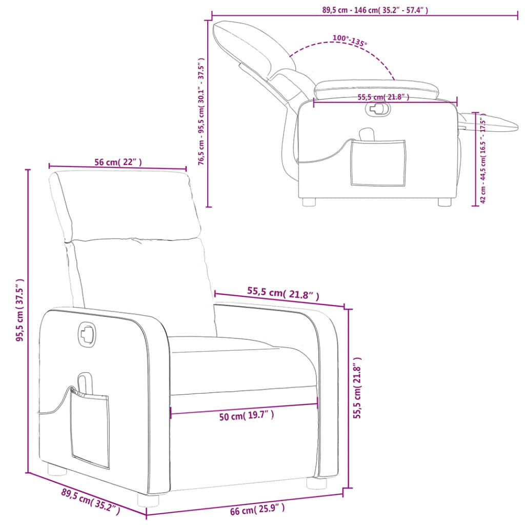 - Funzione di reclinazione manuale: Questa poltrona reclinabile è dotata di una maniglia sul lato destro. Potete regolare manualmente il poggiapiedi e lo schienale in qualsiasi posizione in base alla vostra comodità, tirando semplicemente la maniglia. Questa funzione consente un'inclinazione massima di 135 gradi. Inoltre, lo schienale torna rapidamente in posizione, semplicemente tirando la maniglia.
