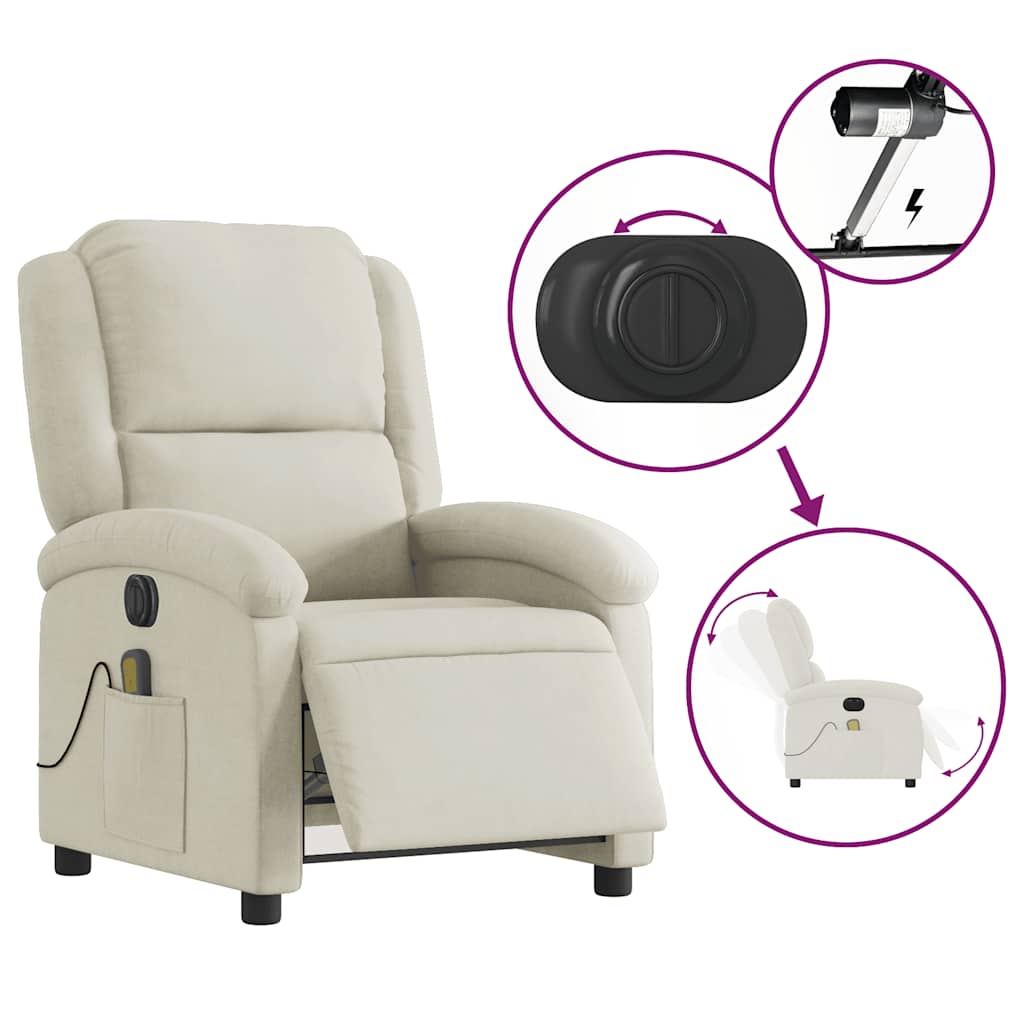Poltrona Massaggiante Reclinabile Elettrica Crema Velluto 3204298