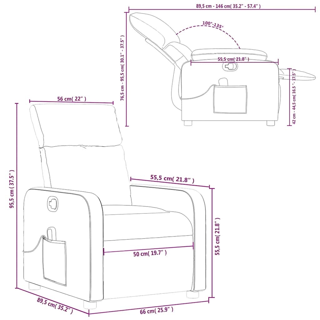 - Funzione di reclinazione manuale: Questa poltrona reclinabile è dotata di una maniglia sul lato destro. Potete regolare manualmente il poggiapiedi e lo schienale in qualsiasi posizione in base alla vostra comodità, tirando semplicemente la maniglia. Questa funzione consente un'inclinazione massima di 135 gradi. Inoltre, lo schienale torna rapidamente in posizione, semplicemente tirando la maniglia.