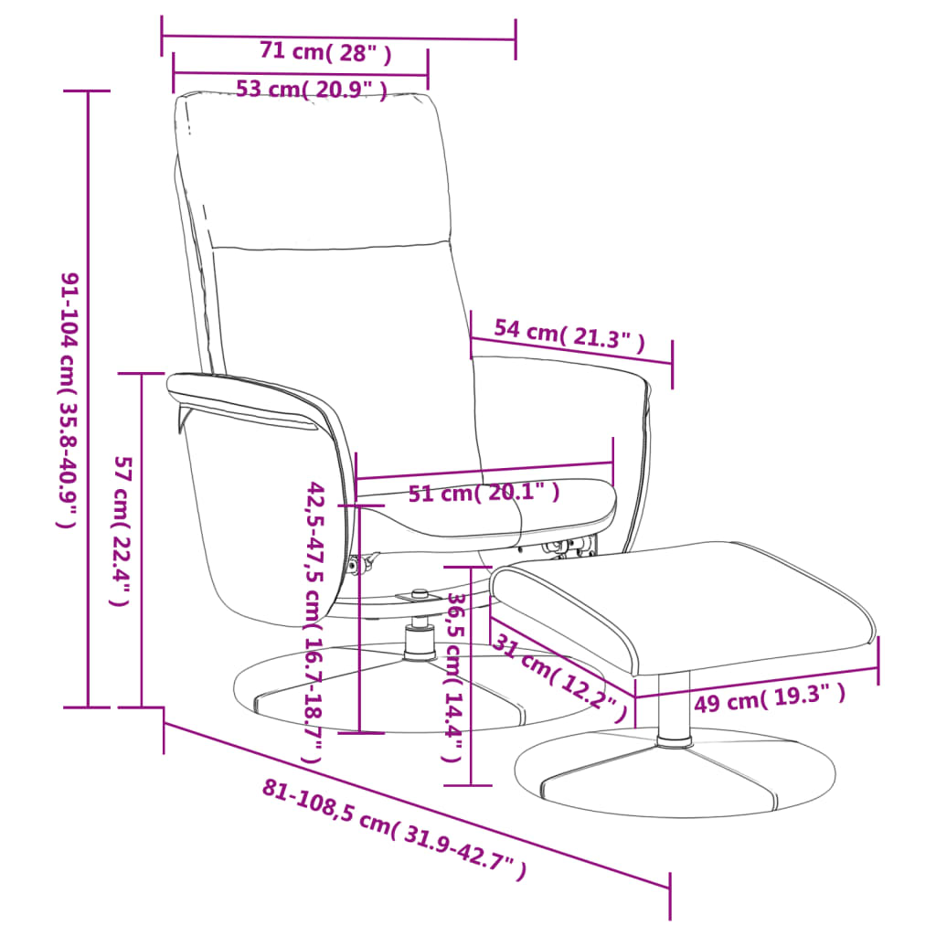 - Dimensioni quando reclinata: 71 x 108,5 x 91 cm (L x P x A)