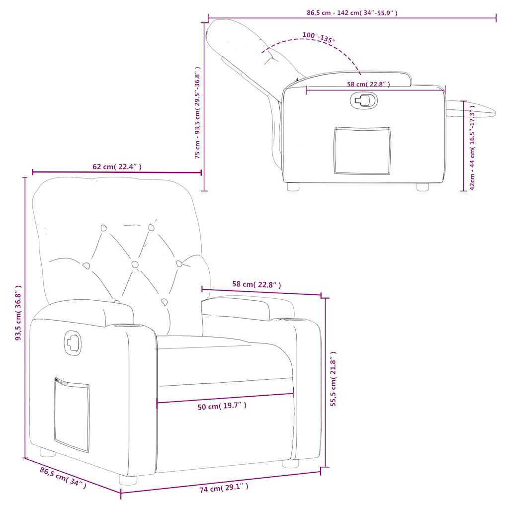 - Dimensioni quando reclinata: 74 x 142 x 75 cm (L x P x A)