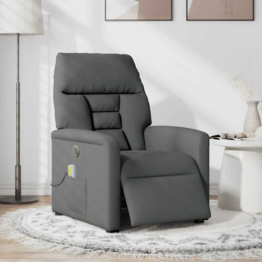 Poltrona Reclinabile Massaggio Elettrica Grigio Scuro Tessuto 3303023