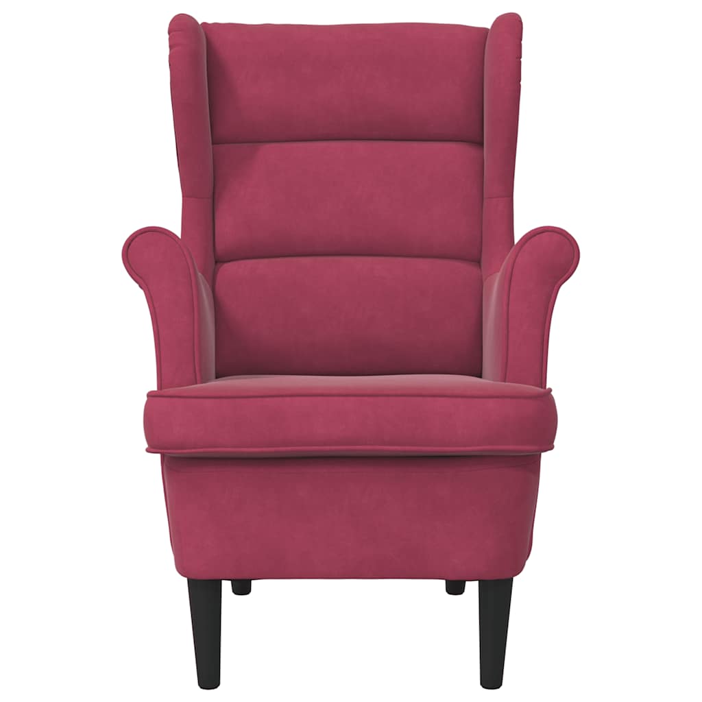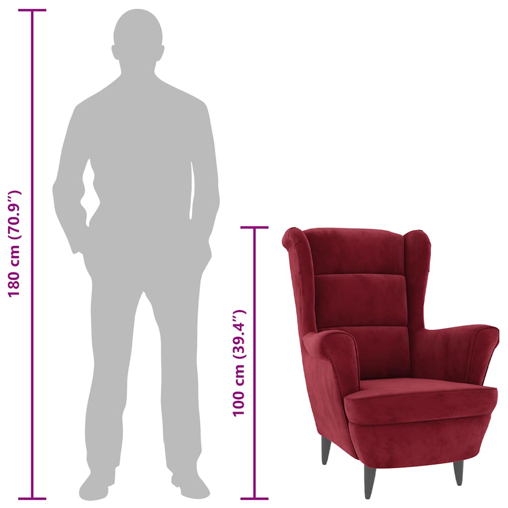 La poltrona è rivestita in velluto, che la rende morbida al tatto e resistente. Il telaio in compensato garantisce stabilità. Lo schienale e il sedile imbottiti offrono anche una comoda esperienza di seduta.