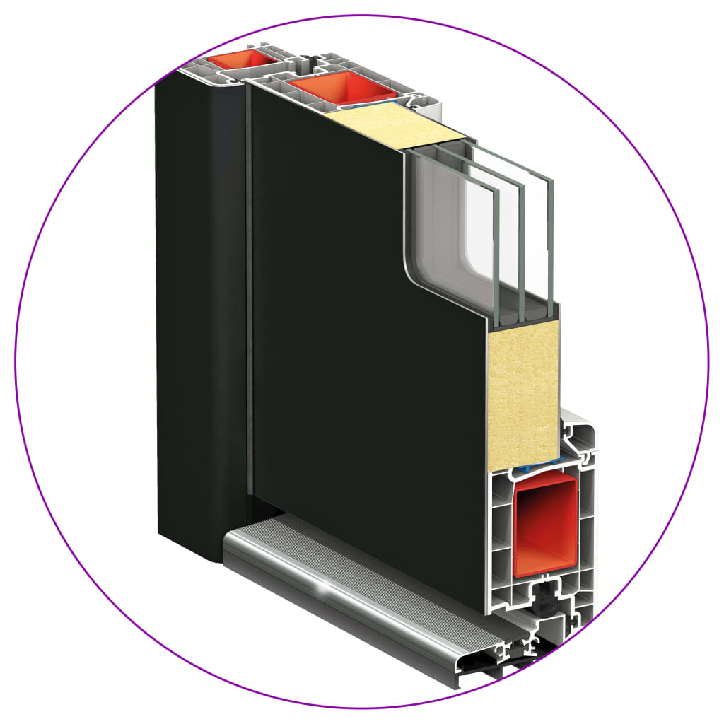Questa porta è dotata di telaio e riempimento di qualità, soglia in alluminio, cerniere regolabili 3D (3 cerniere per porta), 5 serrature a fungo, vetri isolanti e rinforzo in acciaio da 1,2 mm. La porta d'ingresso colpisce anche per la qualità, la robustezza e l'elevata comodità di chiusura. Viene fornita con un kit completo che include il set di maniglie della porta, chiavi, cilindro della chiave, nastro sigillante e set di montaggio.