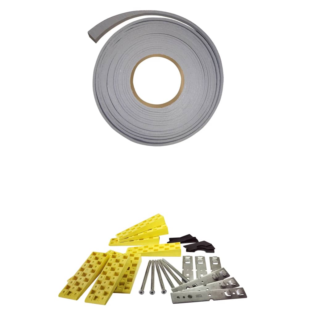 - Include 8 cunei in plastica, 6 zeppe, 6 catenacci e 6 perni in metallo (viti di montaggio)