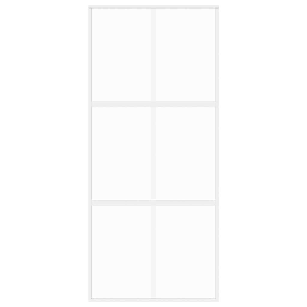 Porta Scorrevole Bianca 90x205 cm Vetro Temperato e Alluminio 155217