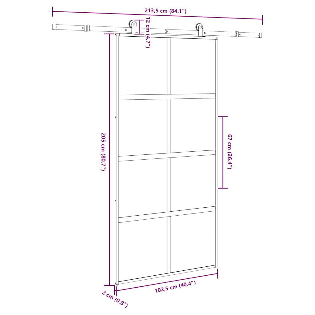 Porta Scorrevole con Ferramenta Vetro Temperato Alluminio 3333012