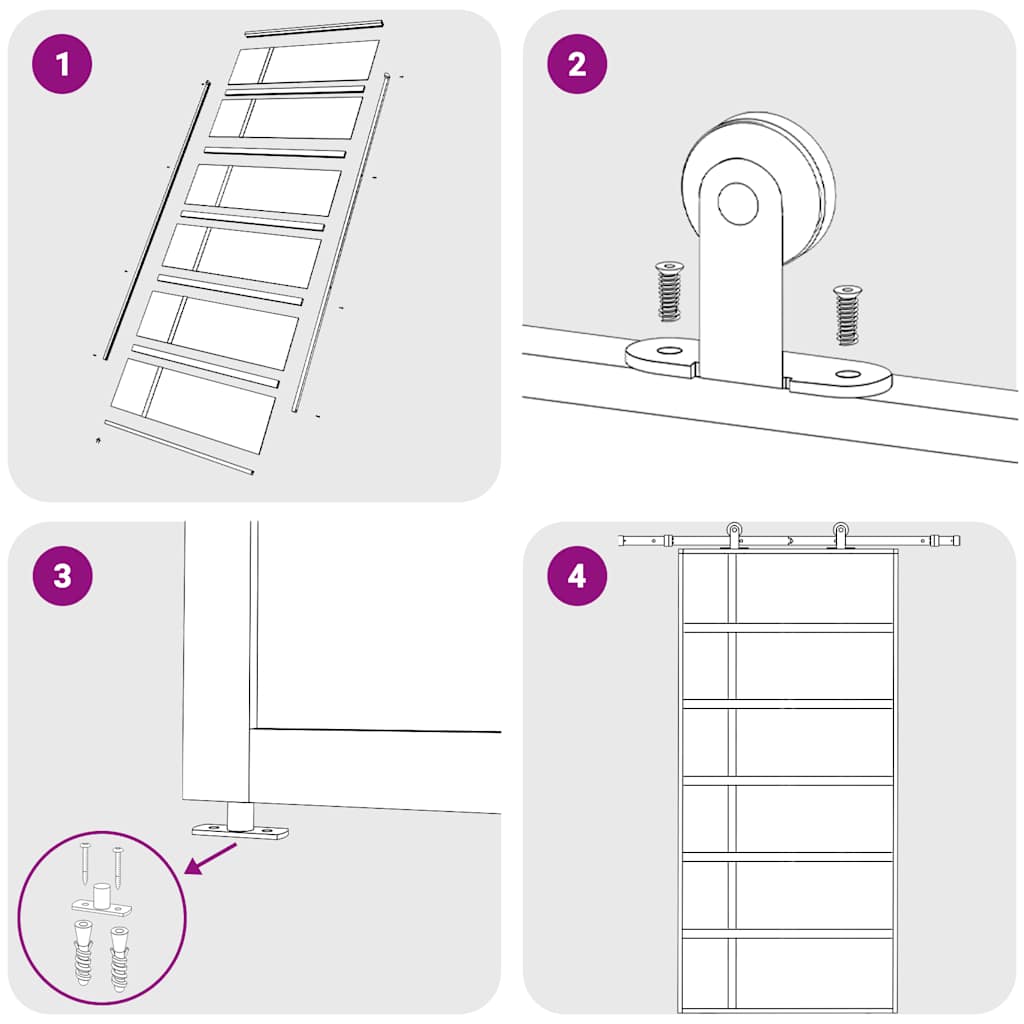 - La porta può essere montata solo in combinazione con i kit di attrezzi per porte scorrevoli. Potete trovare i kit hardware per porte scorrevoli abbinati nel nostro negozio (SKU: 145262, 145263), che devono essere acquistati separatamente.