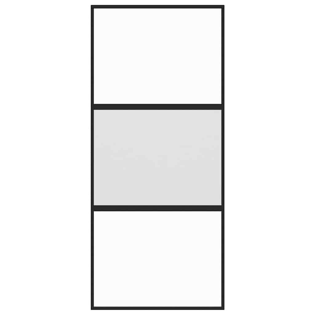 Porta Scorrevole Nera 90x205 cm in Vetro Temperato e Alluminio 155202