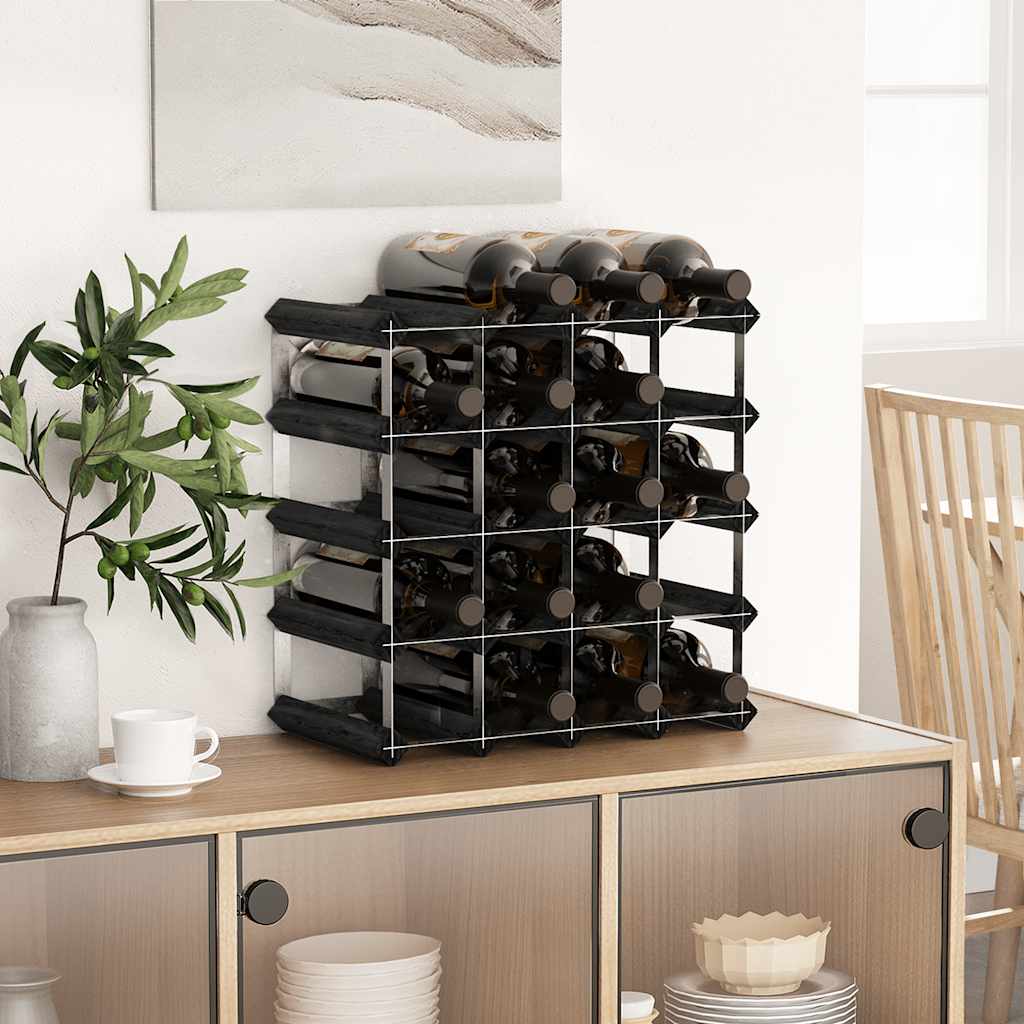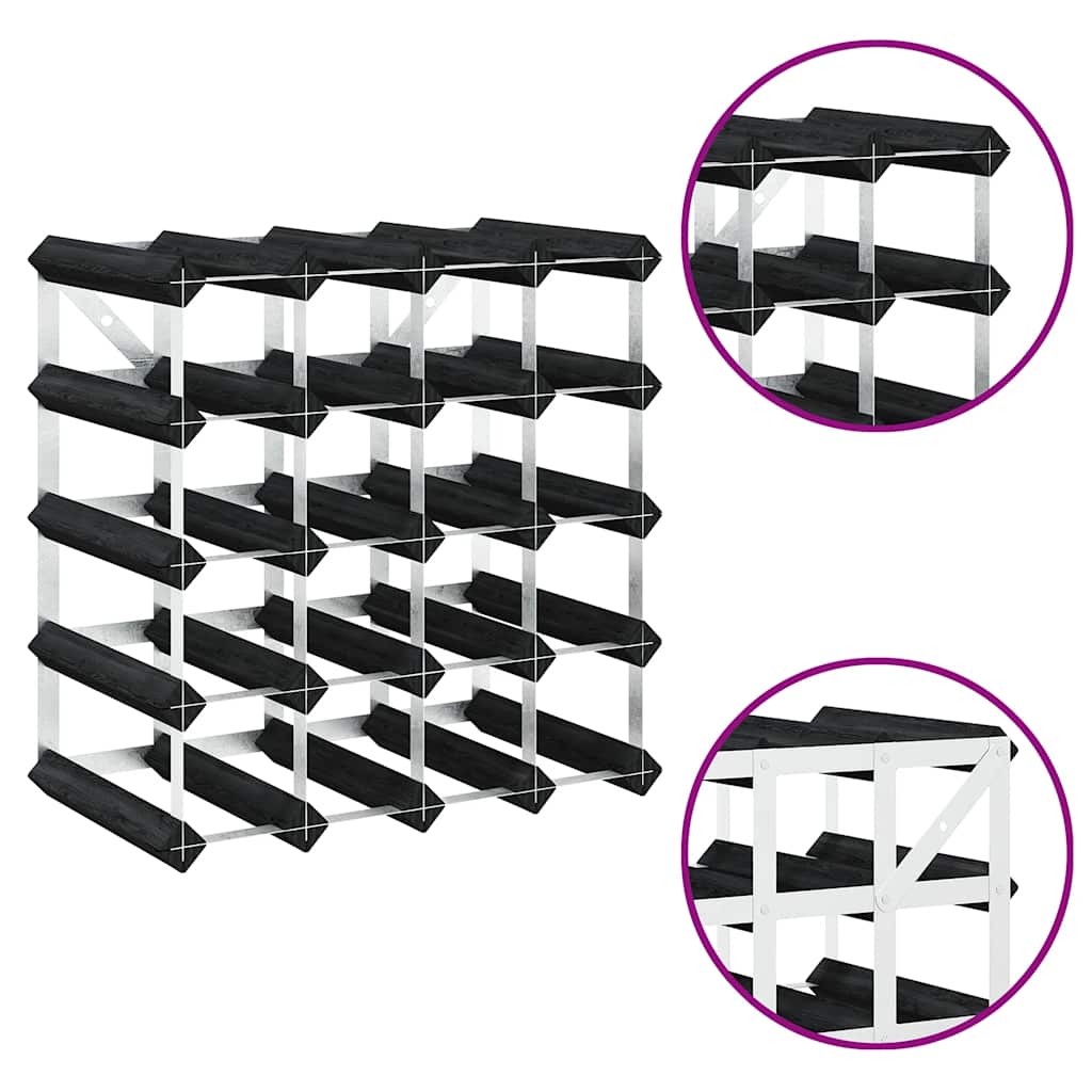 Portavini da 20 Bottiglie Nero in Legno Massello di Pino 325914