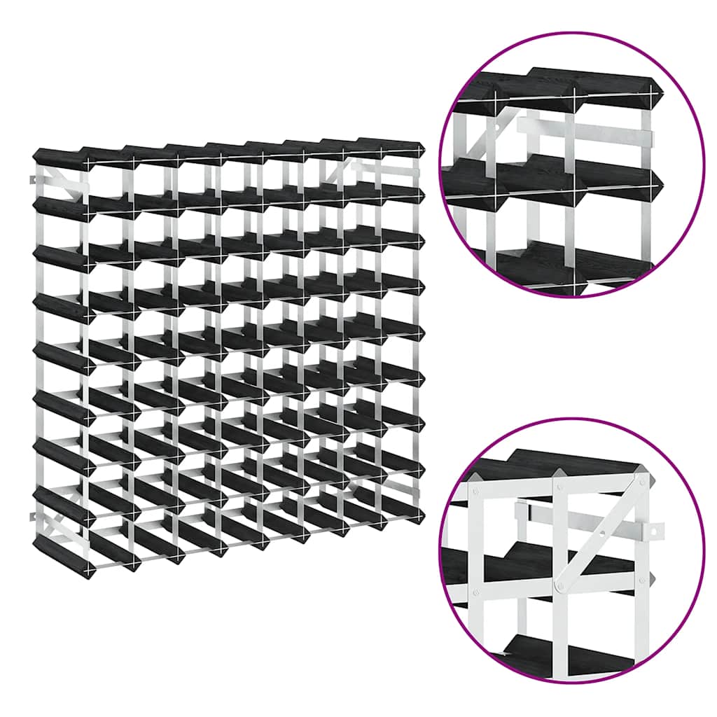 Portavini da 72 Bottiglie Nero in Legno Massello di Pino 325916