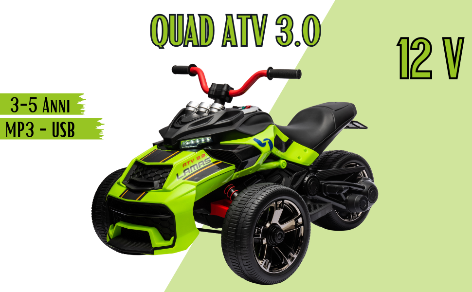 Quad Elettrico per Bambini ATV 3.0 12V-Nero