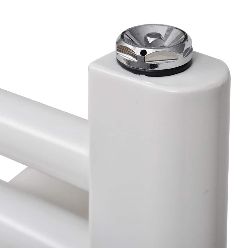 Grazie all'aiuto del sistema di circolazione dell'acqua calda, i vostri asciugamani si asciugheranno in un batter d'occhio, senza alcun costo per la bolletta elettrica. Lo scaldasalviette è dotato di 12 traverse in acciaio di 22 mm di diametro ed è verniciato di bianco. Le traverse sono molto spesse e quindi producono un'elevata potenza termica. La parte superiore e quella inferiore sono entrambe dotate di ingressi d'acqua per un flusso d'acqua ottimale.