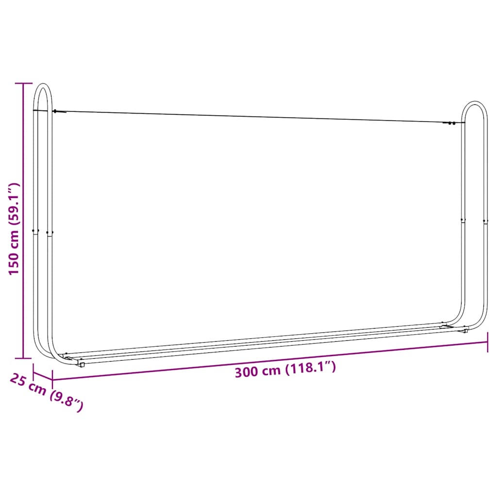 - Dimensioni del rack: 300 x 25 x 150 cm (L x P x A)