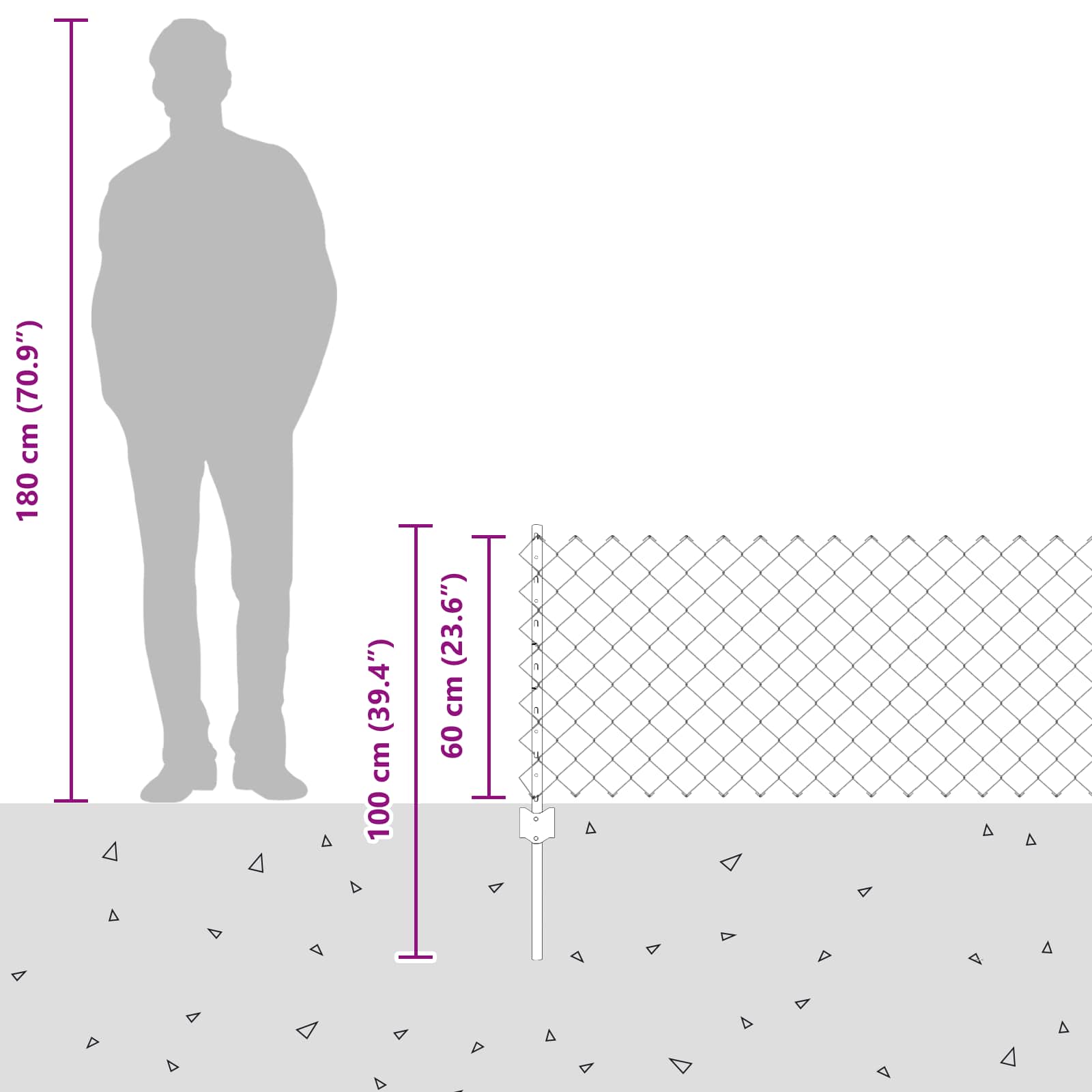 Recinzione con Posto Grigio 0,6 x 10 m Acciaio e PVC 3336266