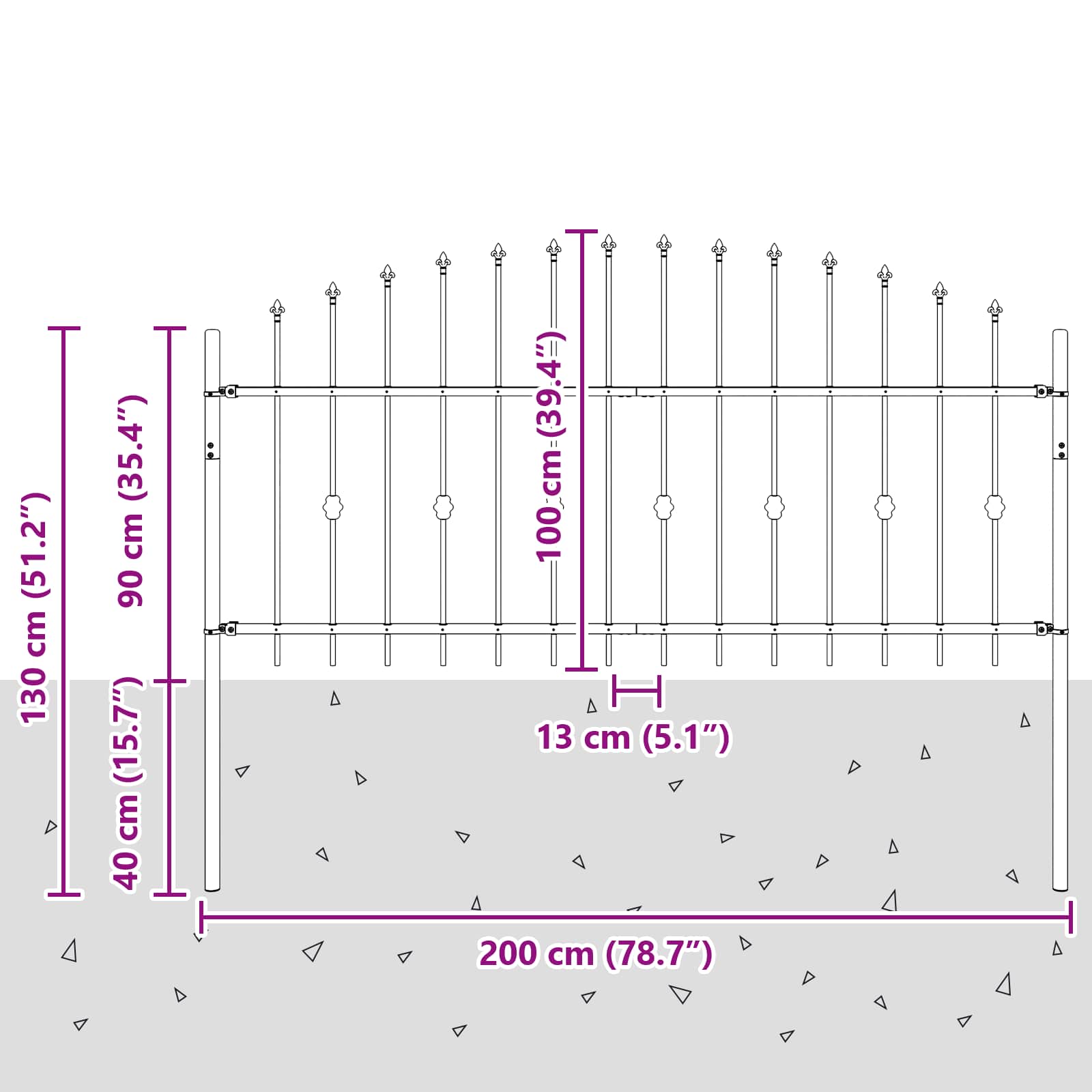 Recinzione a punte Asten Nero 200 x 130 cm 42030086