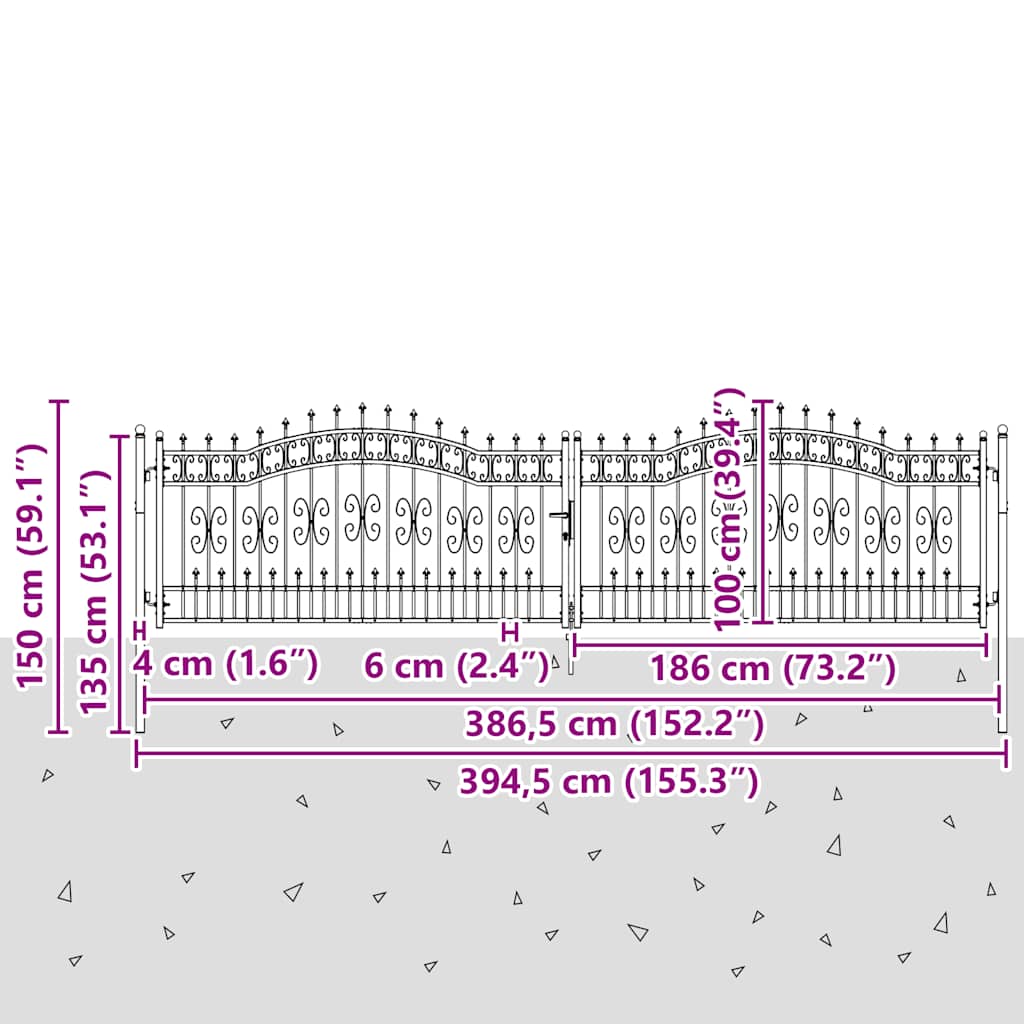 - Design di alta sicurezza: Il cancello fornisce un alto grado di sicurezza, grazie all'elegante design ad arco della parte superiore e ai robusti sostegni orizzontali che rinforzano il telaio e formano un incredibile ingresso per la vostra proprietà.