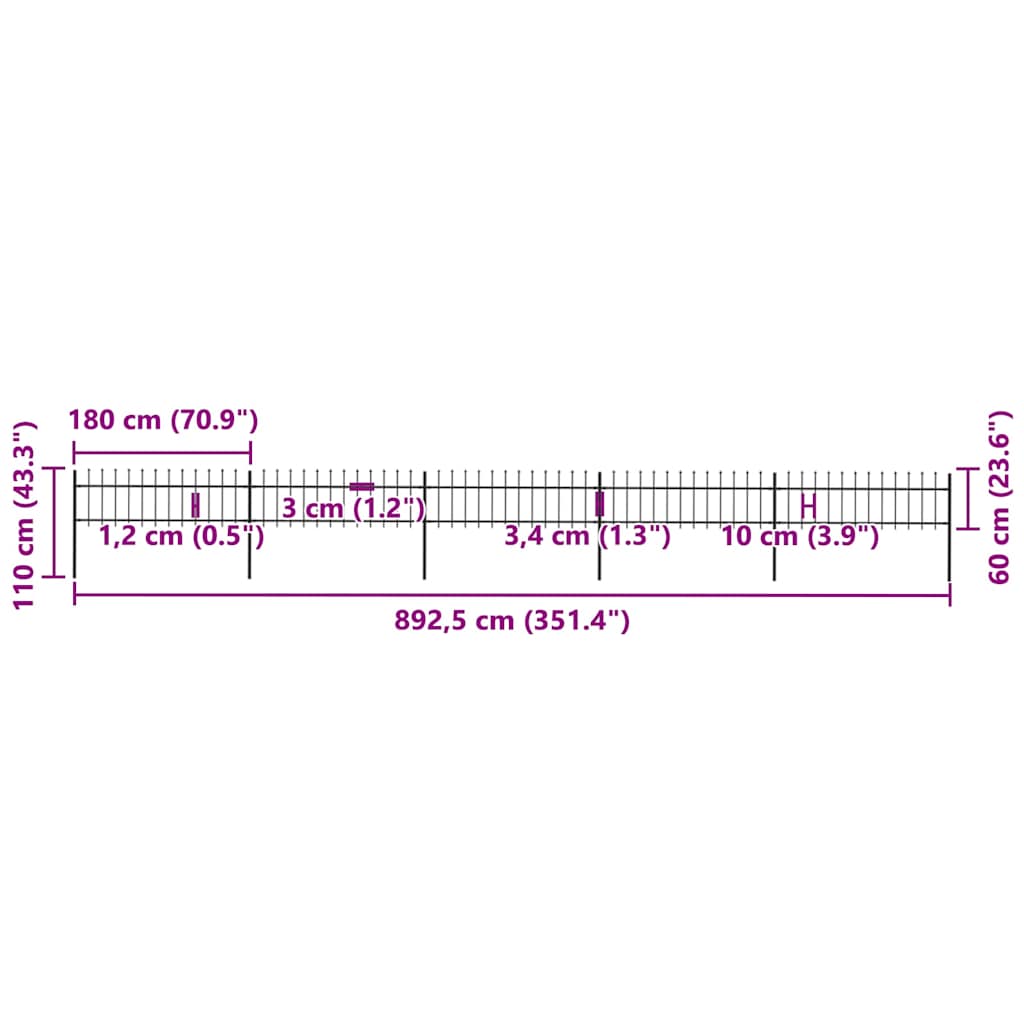 Recinzione da Giardino con Punta a Lancia in Acciaio 892,5x60 cm Nero 277597