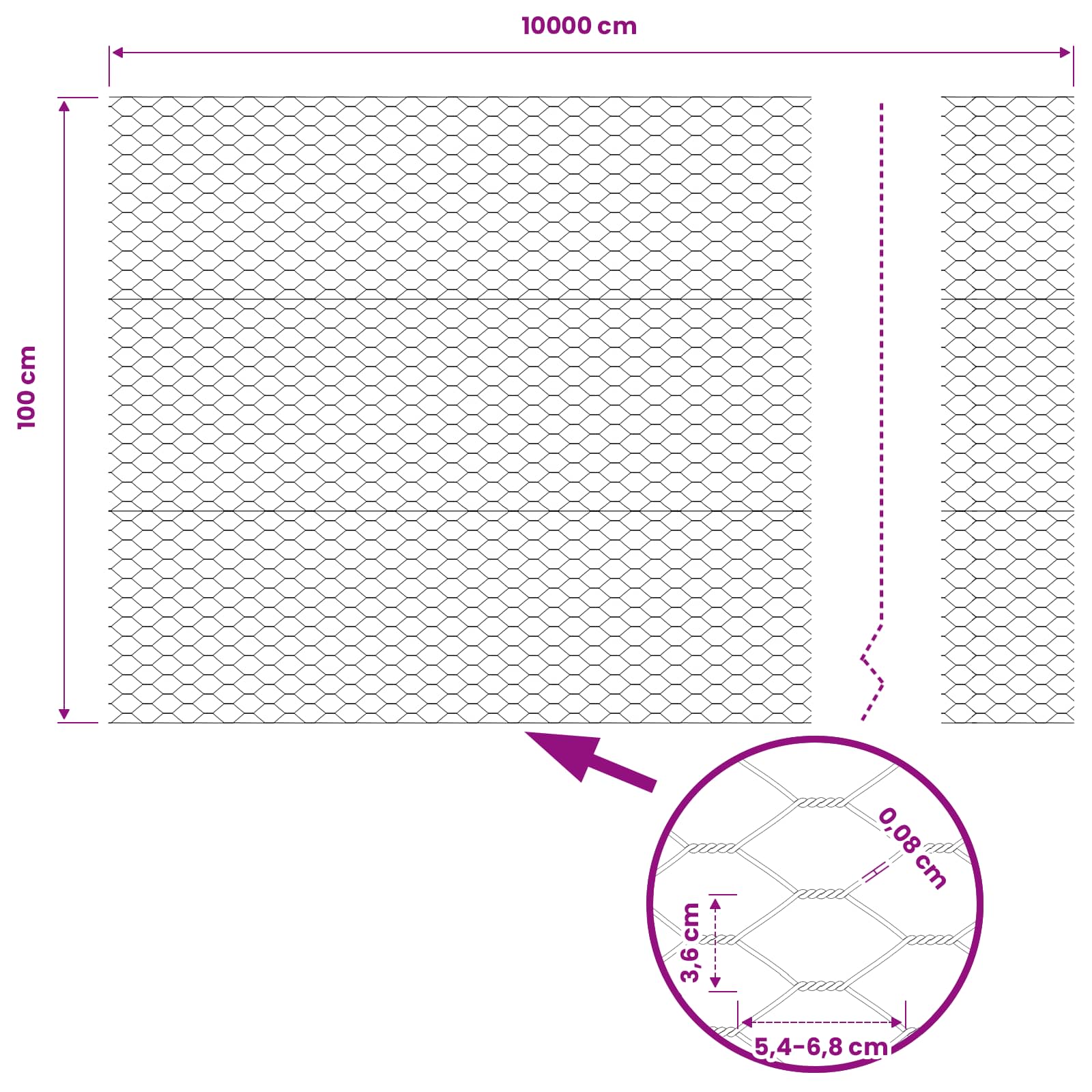 - Dimensioni complessive: 100 x 1 m (L x P)