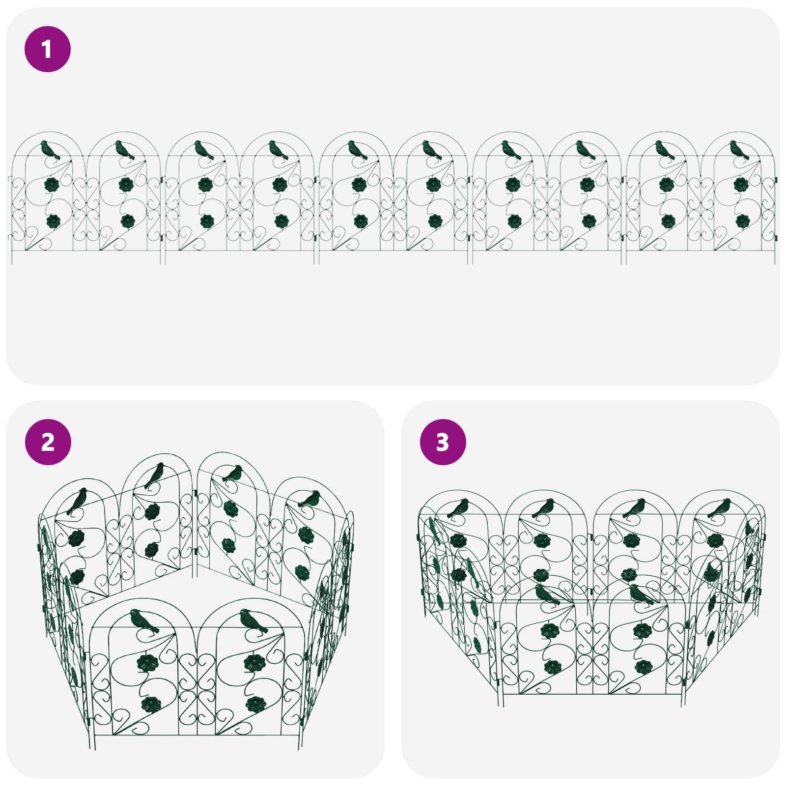 - Struttura in ferro robusta Fatto in ferro resistentissimo, questa recinzione unisce forza ed eleganza. Il telaio offre una barriera stabile, mantenendo quel charm rustico che si adatta benissimo a tanti stili di giardino. Il suo design assicura stabilità e prestazioni durature, resistendo bene alle intemperie e fornendo una separazione sicura ovunque.