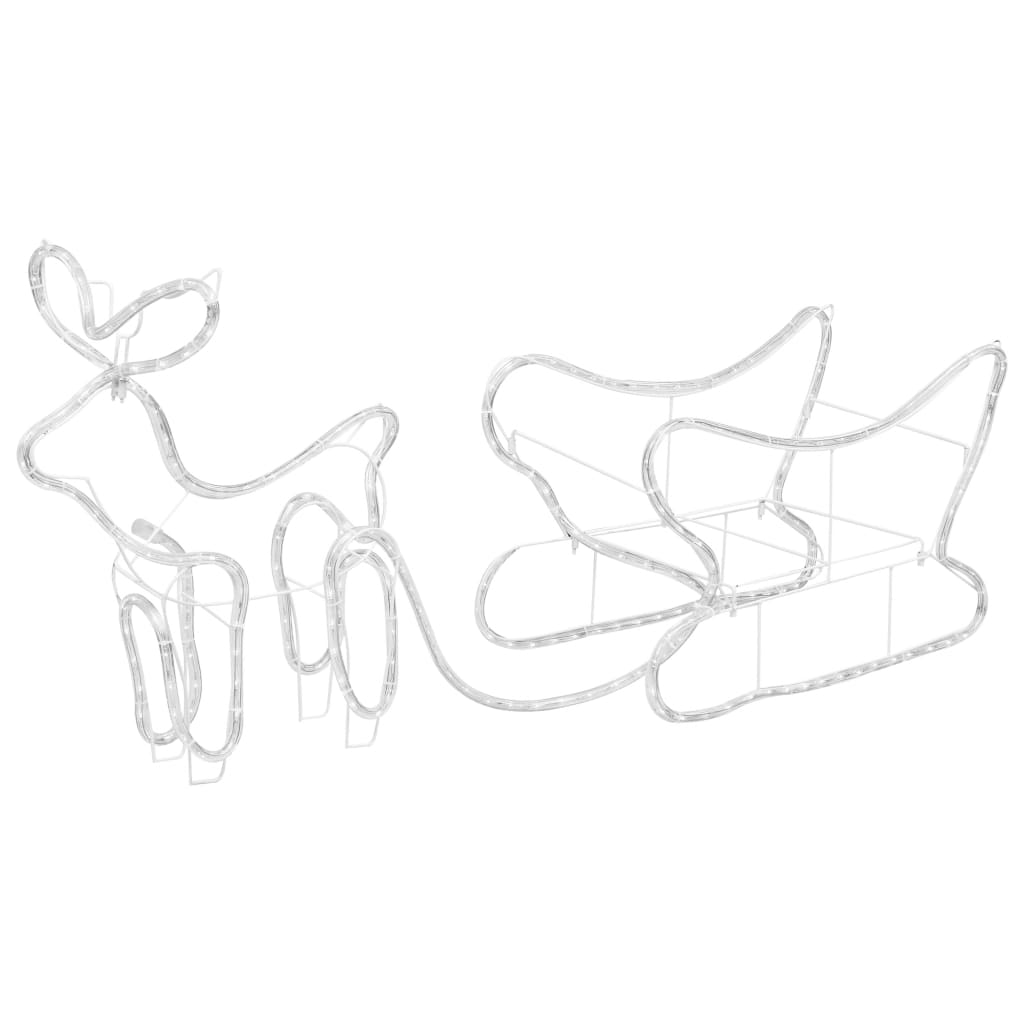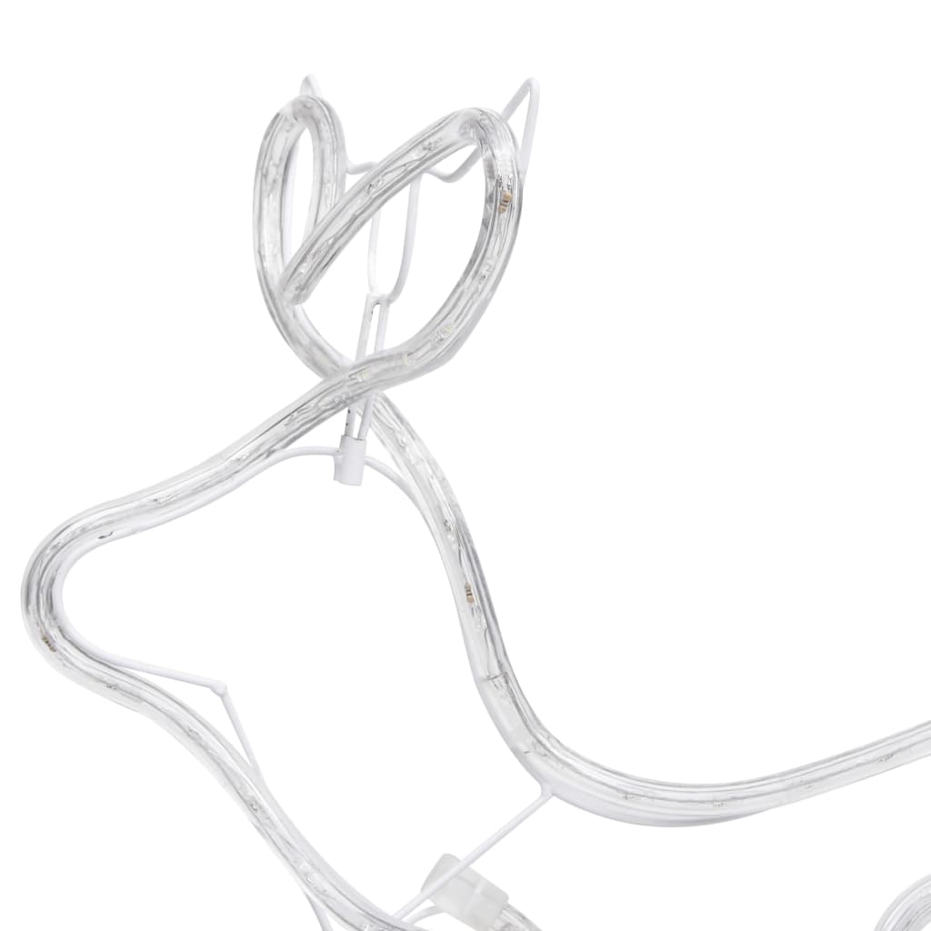 Le renne e la slitta sono illuminate da luci LED blu che creano un effetto soffuso, ciò le rende decorazioni perfette sia all'interno che all'esterno. La corda LED ha 36 lampadine al metro e 252 LED in totale, con caratteristiche ultra luminose e funzione a risparmio energetico.