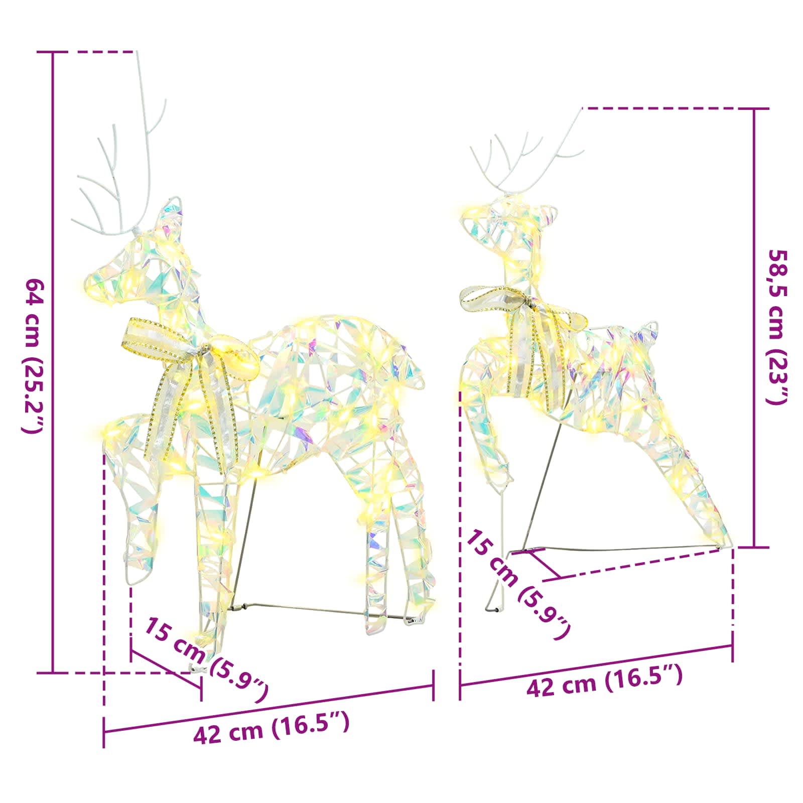 - Manutenzione semplice Mantenere queste renne in ottime condizioni è facile; basta riporle in un luogo fresco e asciutto quando non servono. Questo approccio garantisce durata e mantiene le decorazioni fresche e vivaci.
