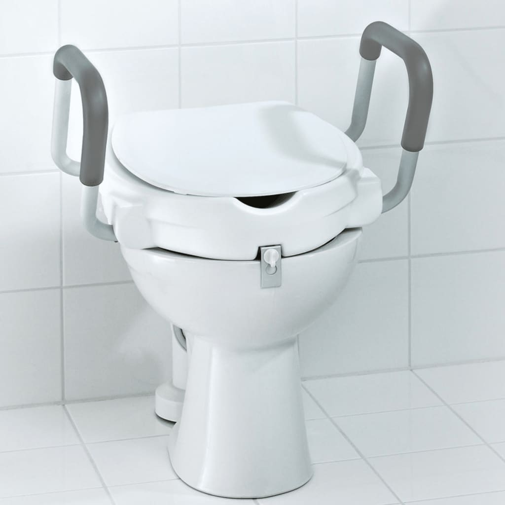 Questa tavoletta per WC rialzata ha una massima capacità di carico di 150 kg e si adatta a qualsiasi arredo bagno grazie al suo colore bianco neutro.