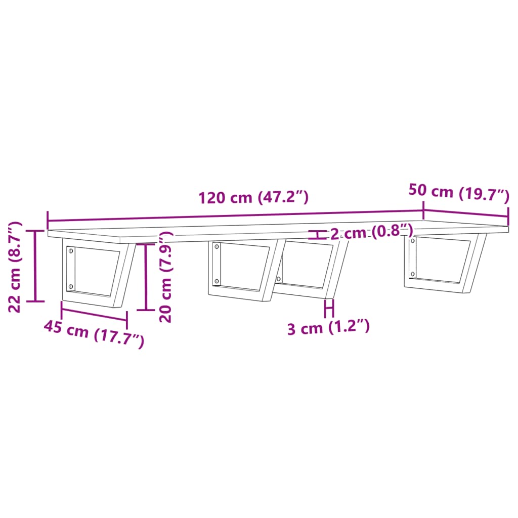 - Dimensioni del supporto per mensola: 20 x 45 cm (L x L)