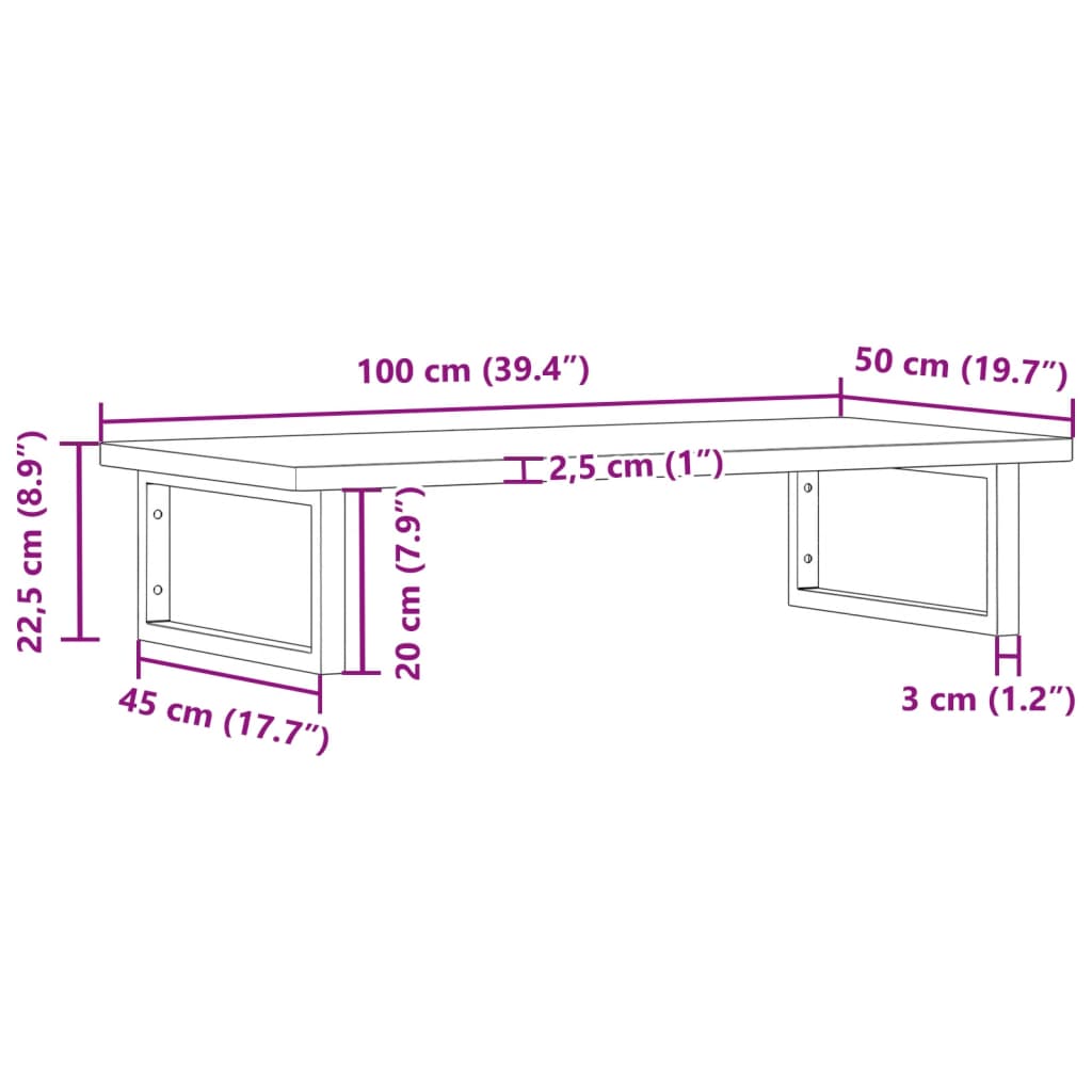 - Dimensioni: 100x50x2,5 cm (L x P x S)