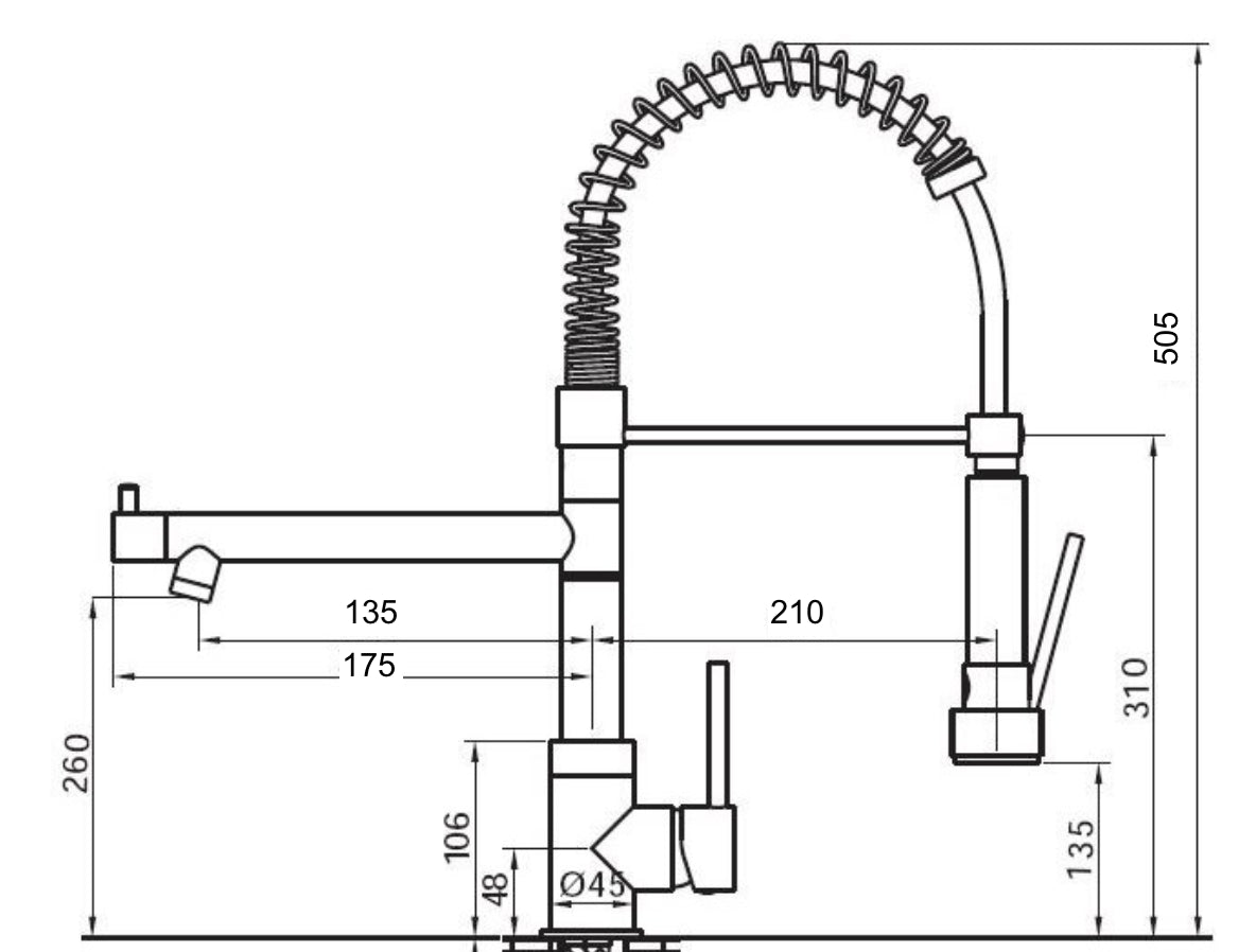 Rubinetto miscelatore cucina professionale industriale con leva clinica doppia uscita