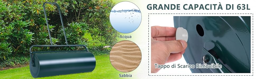 - 【Ampia Capacità】Il rullo per prato ha una capacità di 63 L per contenere acqua, sabbia o cemento ed è abbastanza resistente per tornare alla posizione originale. I rizomi sono quasi integrati con la terra sottostante.