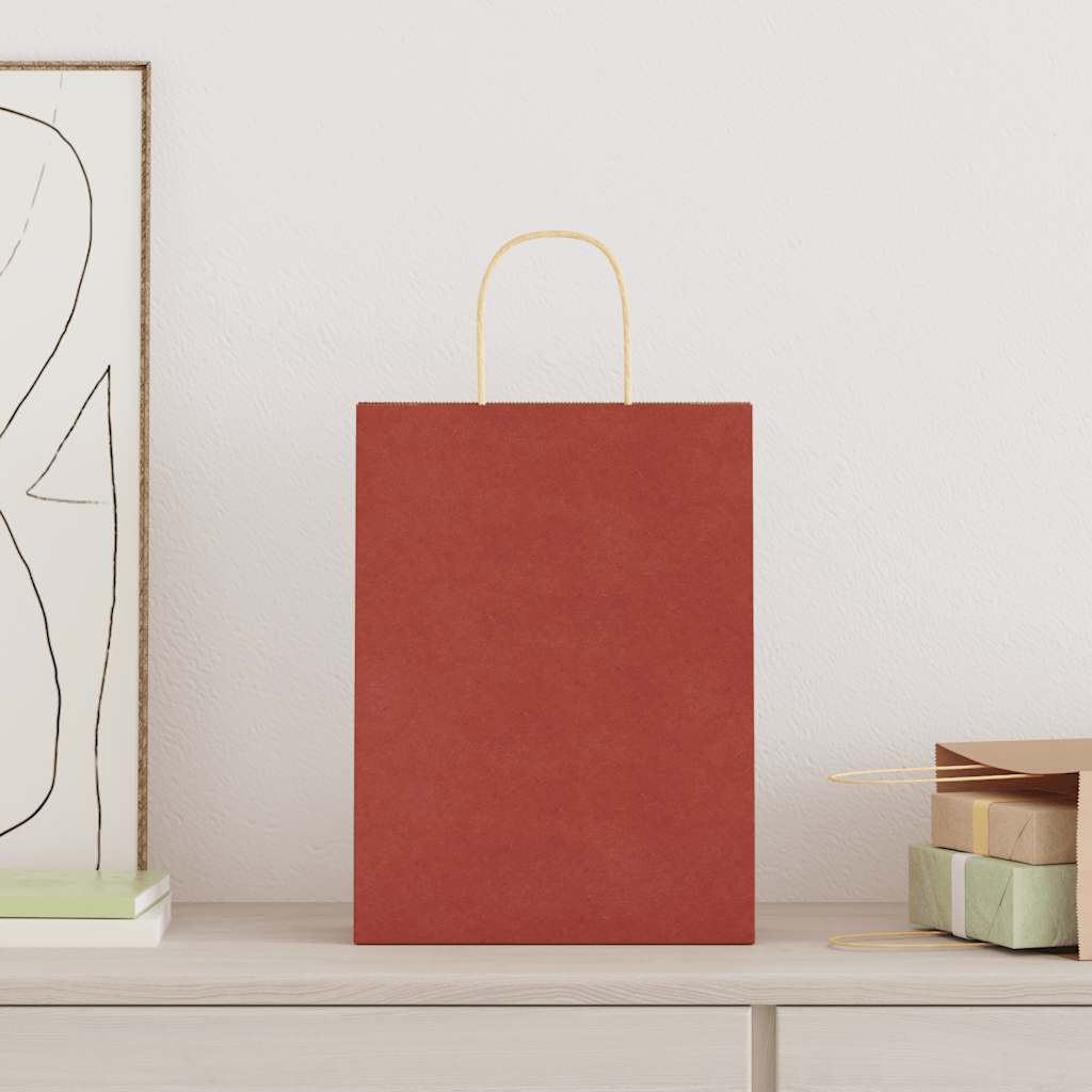 Sacchetti di Carta 250 pz con Manici Rossi 26x12x35 cm 4101758
