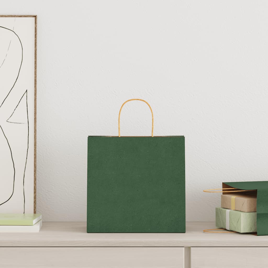 Sacchetti di Carta 50 pz con Manici Verdi 26x17x25 cm 4101717