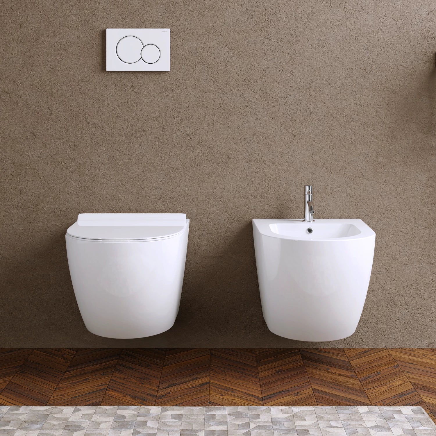 I sanitari sospesi mod. Parigi si caratterizzano per la loro forma tondeggiante, molto di moda negli ultimi anni, uno stile che permette a questa coppia di sanitari sospesi di essere installata in qualsiasi tipologia di bagno, moderno o tradizionale. L'ingombro di soli 49cm ne fa un'ottima soluzione salvaspazio, perfetta per stanze da bagno non particolarmente ampie.